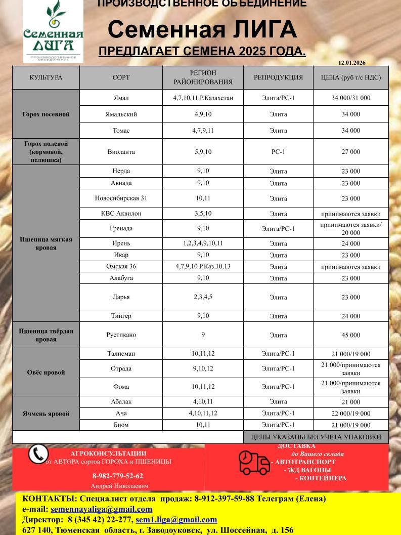 Семенная Лига-оригинатор и патентообладатель сортов пшеницы и гороха