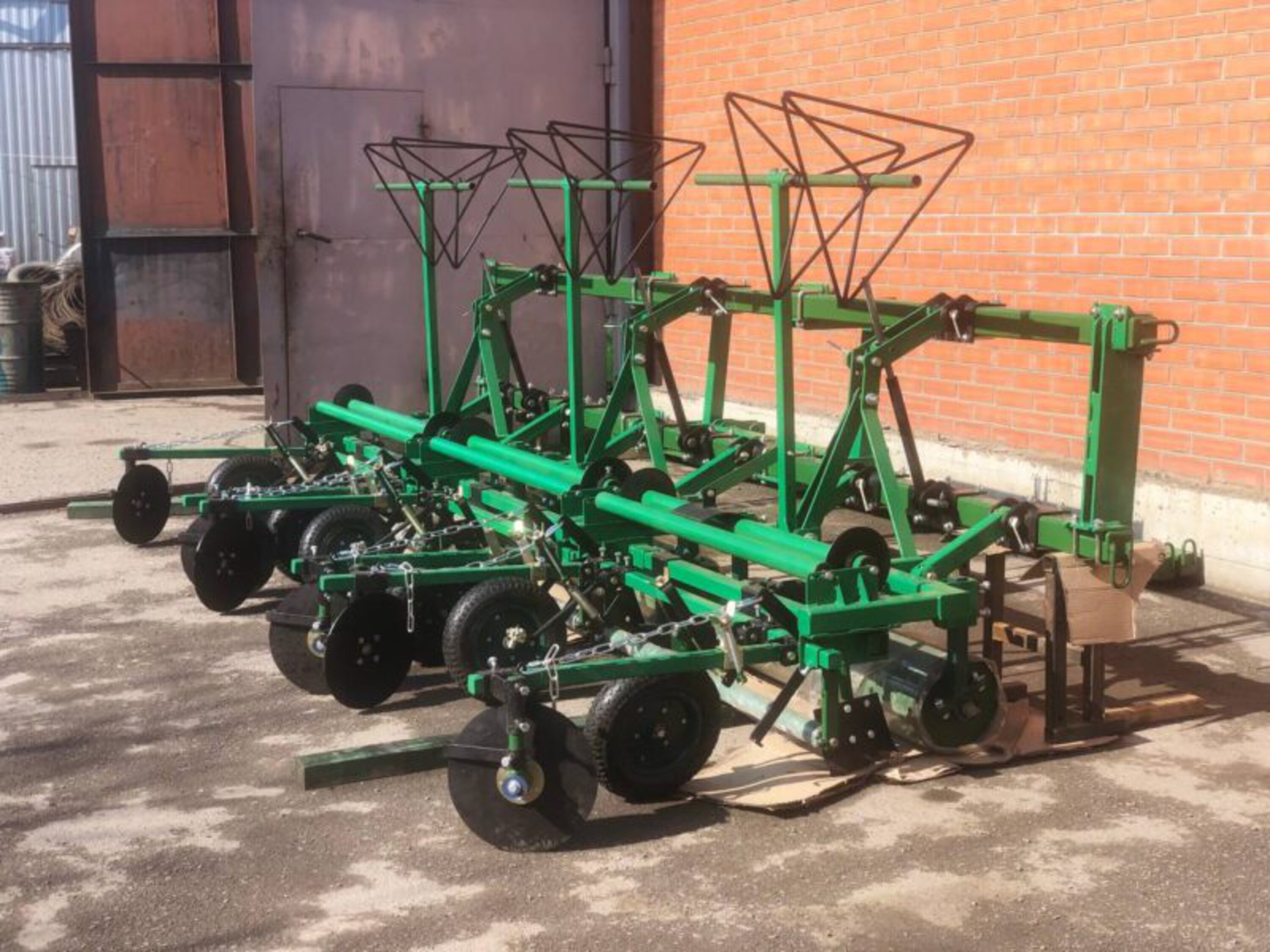 Для бахчевых и овощных культур. За один проход укладывает три ряда плёнки и капельной ленты — решение для больших площадей и серьёзных задач.